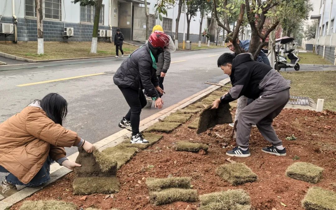 子公司金驰能源团委践行“绿水青山就是金山银山”理念,组织青年在园区内开展种植树苗、铺种草皮等志愿服务行动,团员青年们挥锹挖坑、扶苗培土、提桶浇水,种植樟树苗100余棵,为园区增添一抹新绿。职能部门联合团支部也在园区开展了园区卫生清理等志愿服务活动。